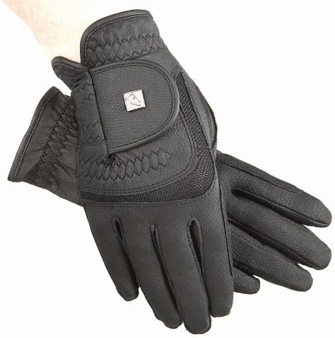 SSG(R) Soft Touch Gloves Great for show jumping or dressage, SSG(R) Soft Touch Gloves are breathable, and constructed with non-sweat kid suede fabric. Featuring synthetic leather snake skin pattern for grip and a ventilated elasticized back, they are the ultimate in feel, comfort, and style. Features: Hook-and-loop wrist closure Ventilated elasticized back Synthetic leather snake pebble pattern for grip Machine washable cool water Item Specifications: Color: Black Sizes: 7, 8