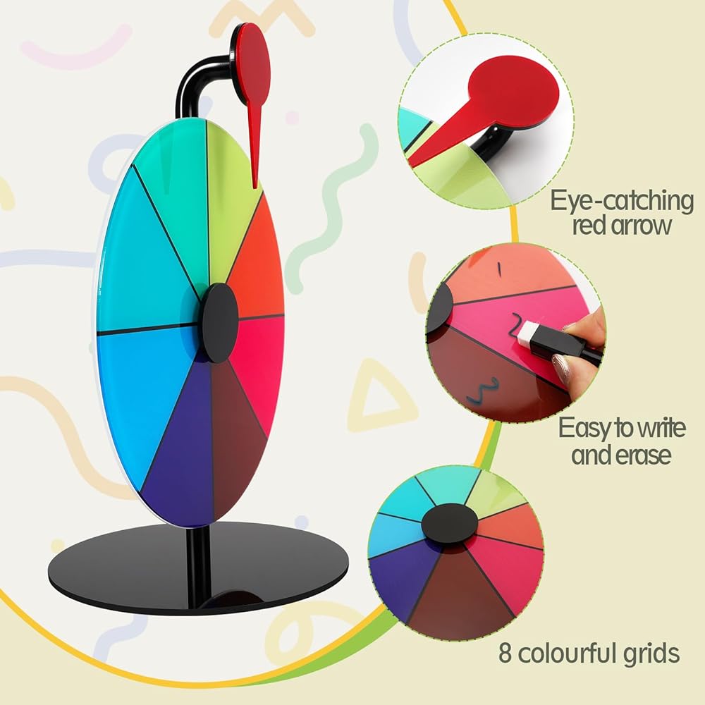 The prize wheel features solid construction can withstand repeated use. The compact and portable design makes it easy to transport to different events, while the detachable stand allows for space-saving storage. The 8 customizable slots allow you to create custom games and prizes for any occasion. Ideals for trade shows, promotions, carnivals, parties and other public events, this spinning wheel for prizes is a must-have accessory.