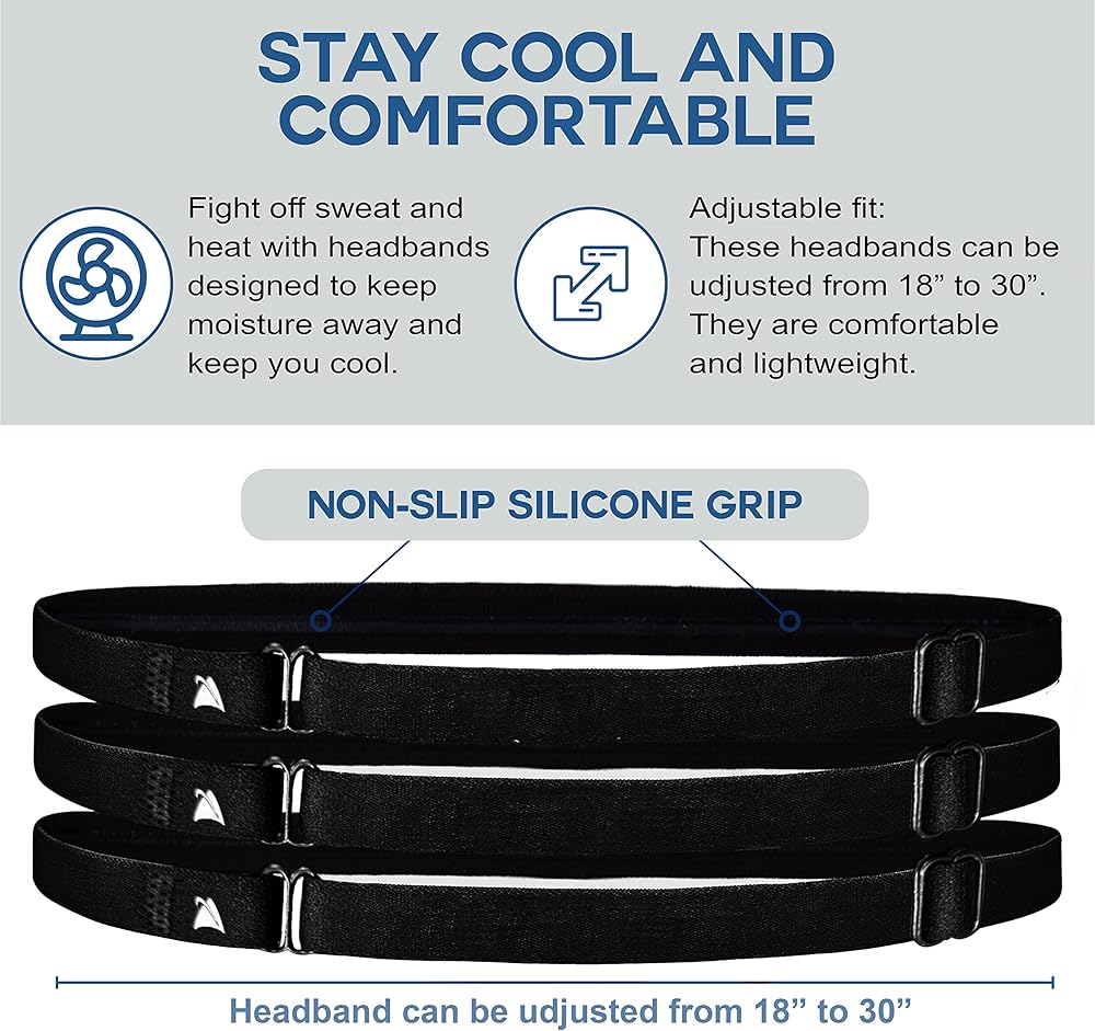 Enjoy sports gear that will keep you comfortable and help you perform better! Try Athlé adjustable elastic headband thin. The perfect head support for when you're exercising and will keep moisture out and coolness in. Get your hair out of your eyes with these thin headbands for men and women!!