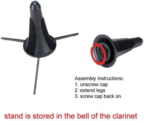 Compact Clarinet StandPortable Compact Clarinet StandThe compact clarinet stand is stored inside the clarinet bell. Assembling Instructions: 1. Unscrew cap at the bottom of the stand. 2. Extend the legs. 3. Screw cap back on with the legs extended.