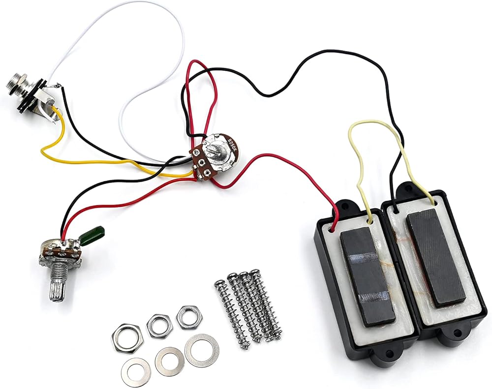 • Package Includes: 2 P Bass pickups with 2pcs potentiometers, 3 washers, 3 nuts, 4 Springs and screws. (As with all bass pickups, please be very gentle with the flimsy mounting screws and use the correct sized screwdriver. Put a little soap on the threads before you screw them in, and don't strip the heads.)