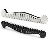 Off-ice is about to change dramatically! The new generation skate guards completely changes your life at the rink! Inspired by nature, the E-Guards have to been completely rethought for better drainage and protection and it is so easy and quick to use. It's one piece, no fiddling, no parts, no assembly required! It stretches to fit most of the sizes. It fits free-style blade sizes 8 ¾ to 10 ¼ (although some skaters use it also on blade size 10 ½). For dance blades, the E-Guards cover blade sizes 9 ¼ to 11.