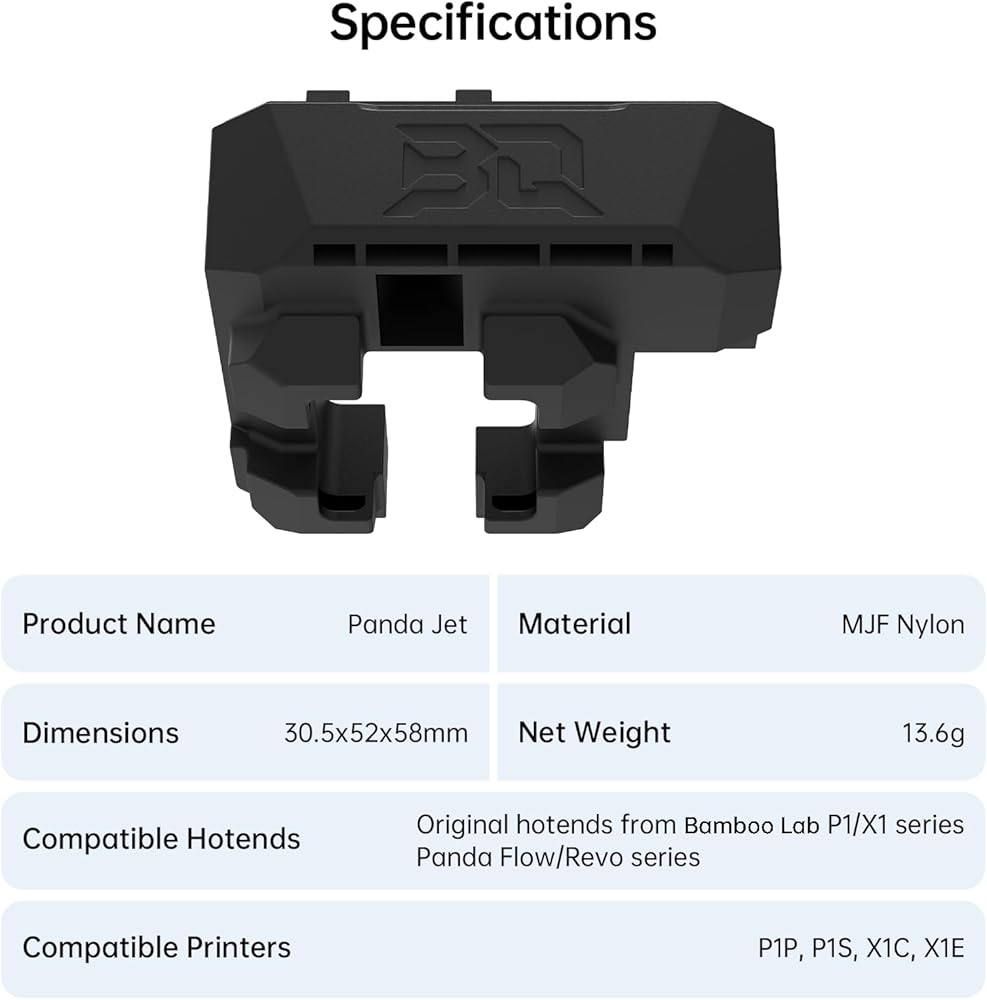 BIQU Panda Jet Fan Duct for Bambulab P1S/P1P/X1C/X1E 3D Printers, Print Head Fan Duct, Larger Air Flow, Effective Cooling, Compatible with Stock Hotend and Panda Revo/Flow