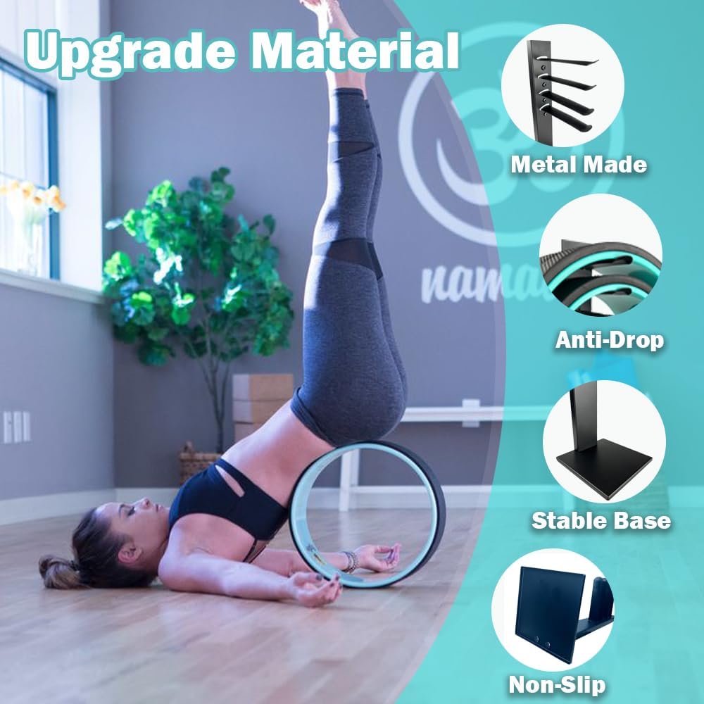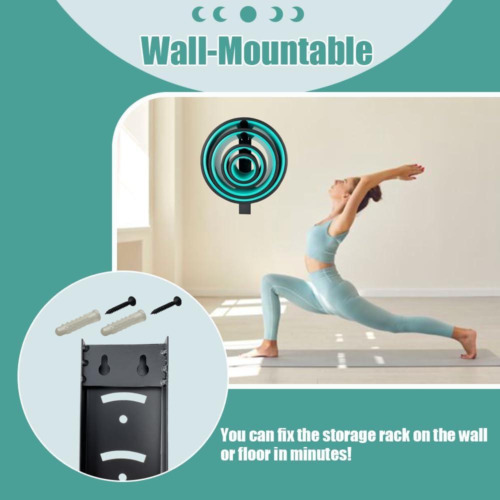 【Durable, Gym-Quality Material】ALL Body Crafted from robust metal, our Yoga Wheel Storage boasts a gym-rack level of sturdiness. Its durable structure offers exceptional support for your yoga roller set, ensuring longevity and reliability.