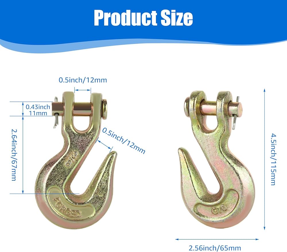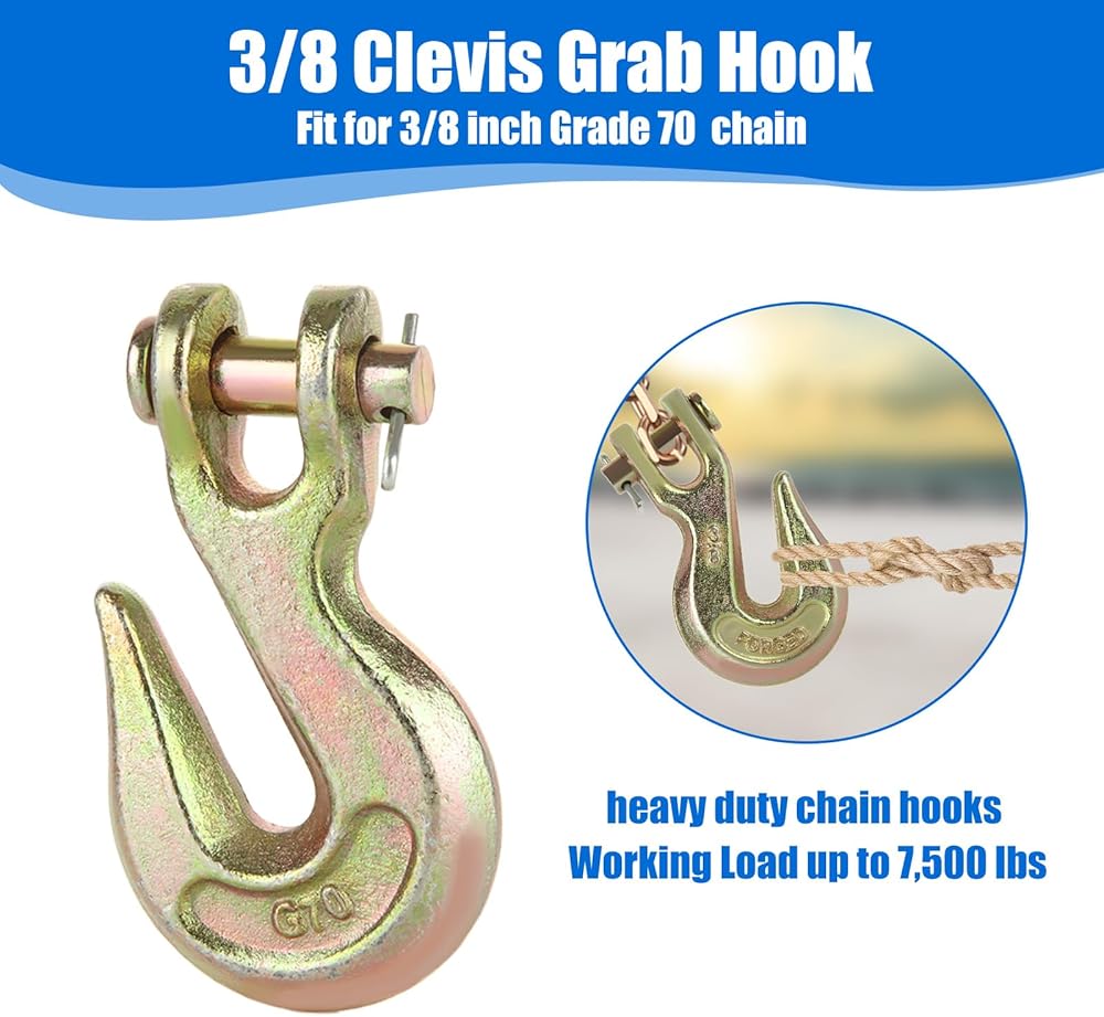 High Strength: Forged with high-quality heavy-duty alloy steel and non-slip handling plated. Each 1/4 clevis grab hooks load up to 3300 pounds, and 4000 lbs breaking strength.