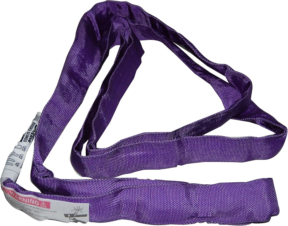 1" x 6' Endless Round Lifting Sling, Purple, Lightweight and Durable, Looped Synthetic Yarn, Double Wall Polyester Web Cover, 3 Rigging Variants, Moisture Wicking