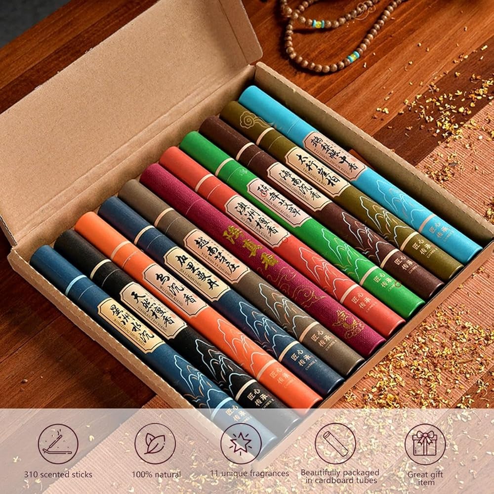 Incense Sticks, Pack of 11 Insenses - 440 Sticks, Natural Incense Set with Incense Holder for Purification, Relaxation, Yoga, Meditation, and Add Flavor