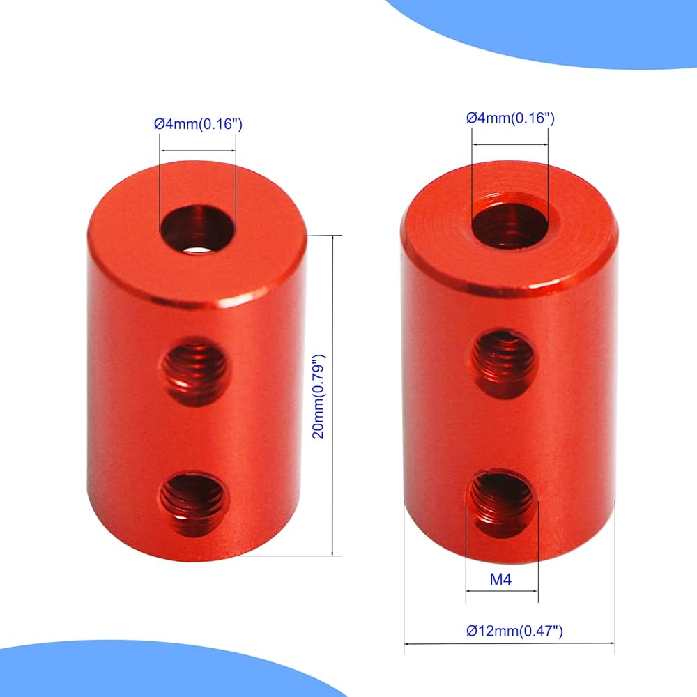 Aopin 4mm to 4mm Red Rigid Couplings Set Screw Shaft Stepper Motor, Length 20mm / 0.79" Motor Coupler Connector Rigid with for 3D Printer, RC Robot, Car Model Shaft, CNC Machine, DIY Encoder 4 Pcs