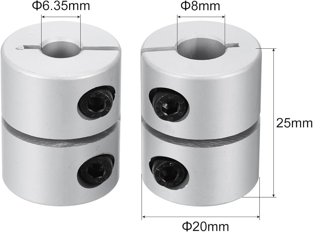 uxcell 2pcs Shaft Coupling 6.35mm to 8mm Aluminium Single Split Clamping Coupling, Rigid Stepper Motor Wheel Coupler Joint Connector for DIY Model, 3D Printers