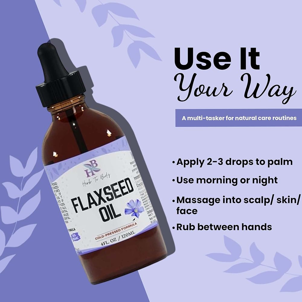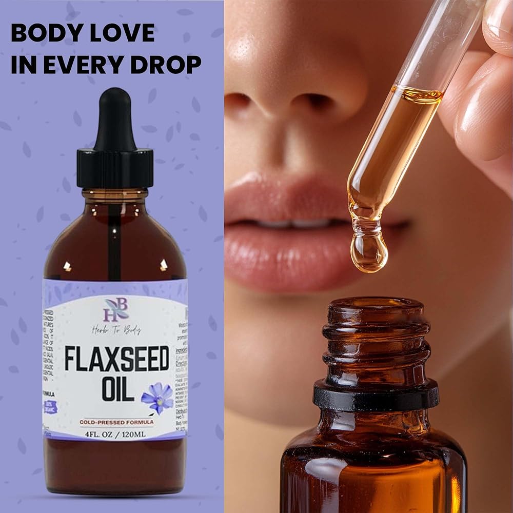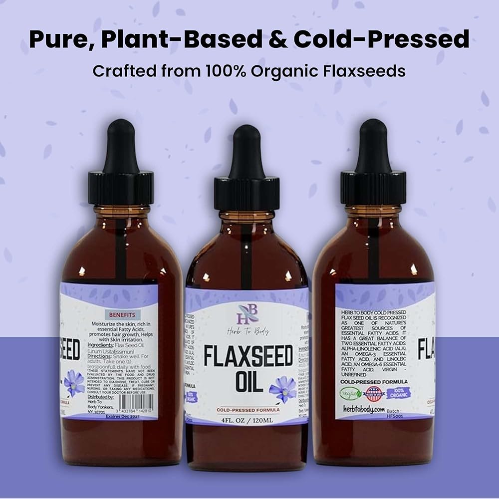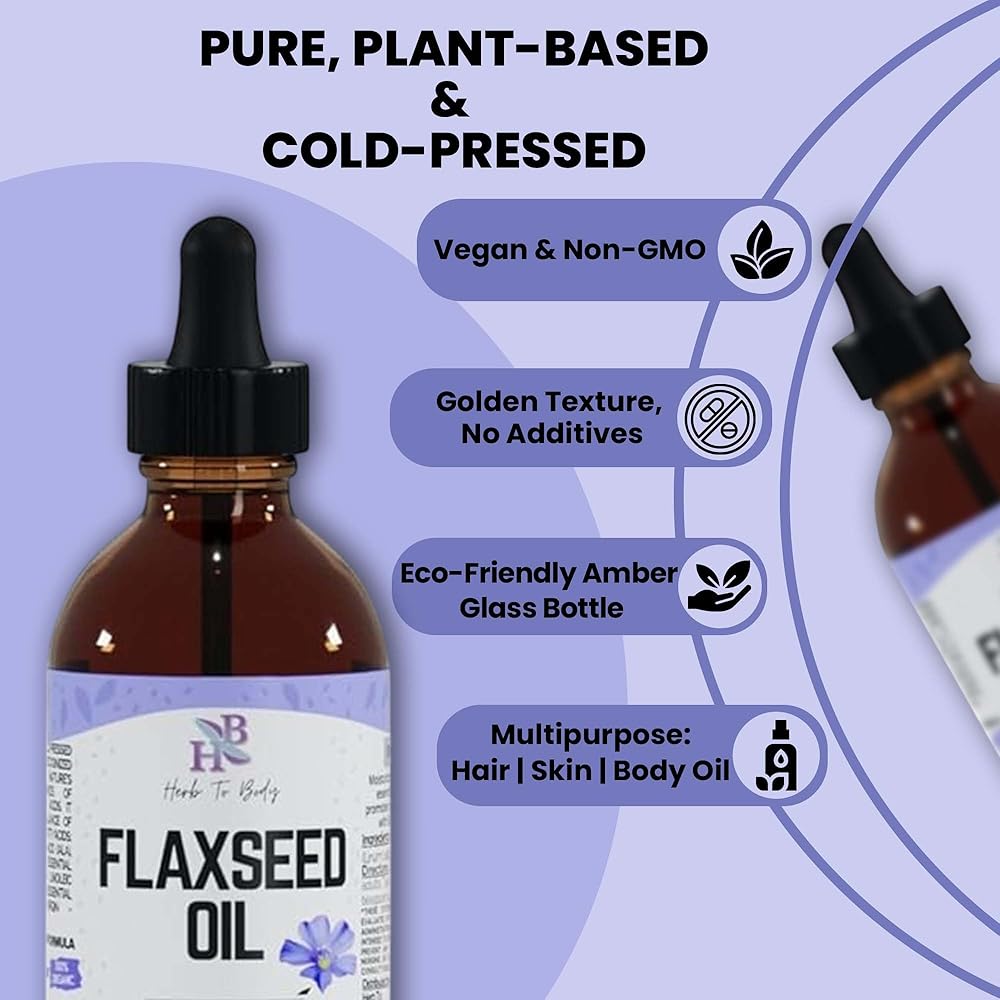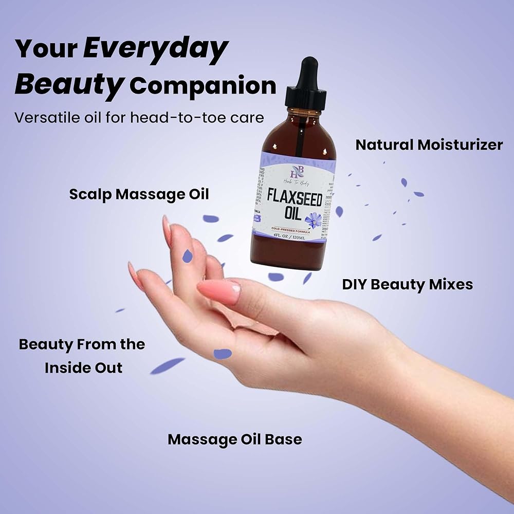 Herb To Body Organic Flaxseed Oil – 4 oz, Rich in Omega 3 Fatty Acids for Hair Care & Skin Care Support, Versatile Natural Moisturizer with Cold-Pressed Flaxseeds