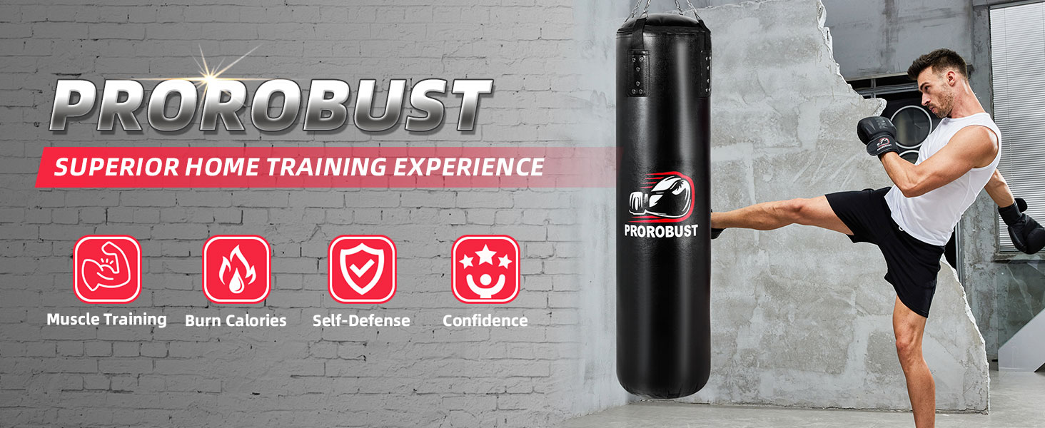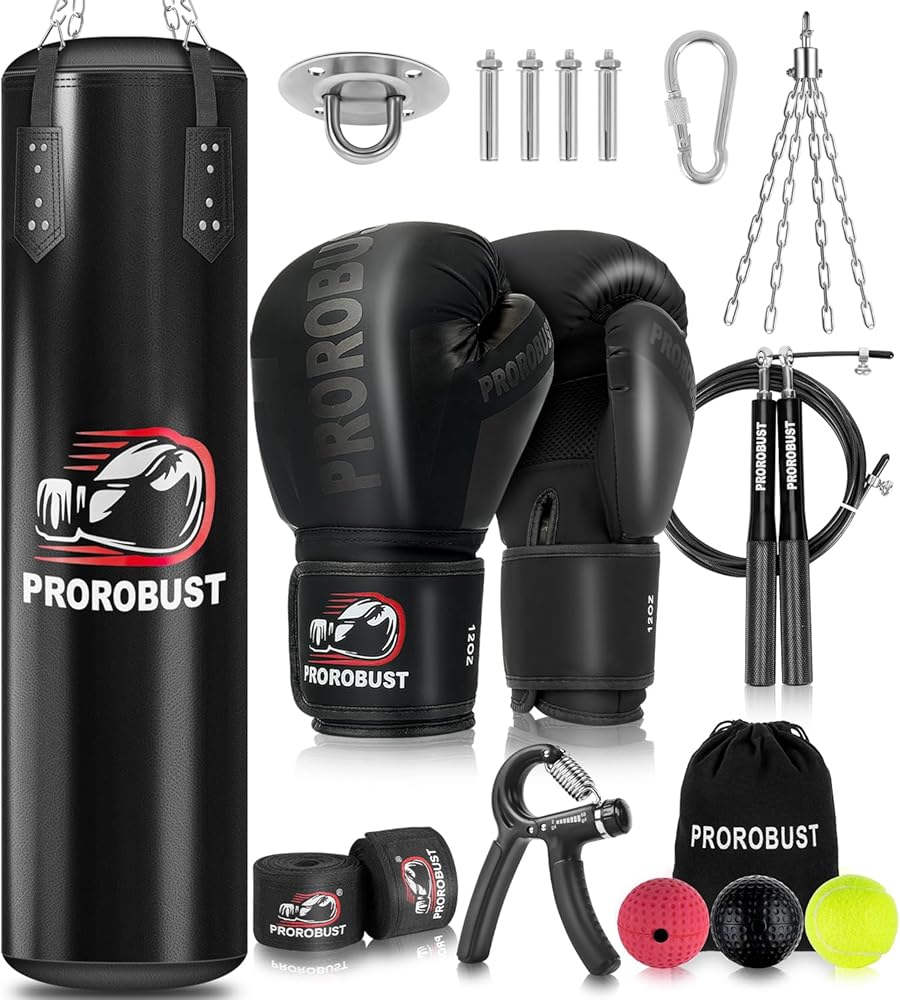 Prorobust Punching Bag for Adults, 4ft PU Heavy Boxing Bag Set with 12 oz Gloves 180-inch Hand Wraps Suitable for MMA Karate Kickboxing Boxing Trainging - Unfilled