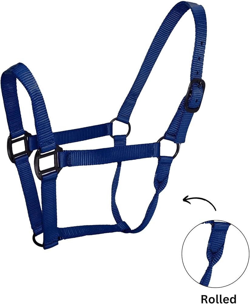 ✔ GREAT COLORS AND DESIGN: Our nylon halters for horses come in great colors, making your horse look stylish with a rounded throat latch. Available in attractive colors, these halters add a touch of elegance. With a reliable throat latch and heavy-duty construction, this halter is both functional and attractive.