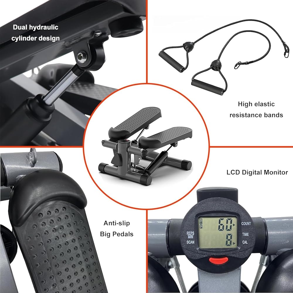 LED display and adjustable height.-You can adjust the height of the steps. A low stride makes it easier to step to extend your duration, and a high stride will burn more calories.