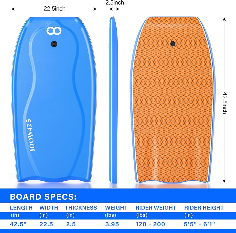 ☞【DYNAMIC DESIGN FOR YOU】A stylish design with 42.5-inch size and bright colors and give you the best surfing fun. This high quality bodyboard is designed for more experienced boarders.