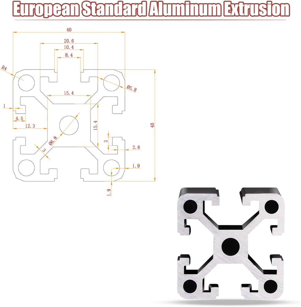 Our pack includes 4pcs,Sliver, Length:600mm/23.6 inch, Dimensions: 40*40mm/1.57*1.57 inch T slot 4040 aluminum extrusion profile. Compatible with all 20 series fasteners and accessories.