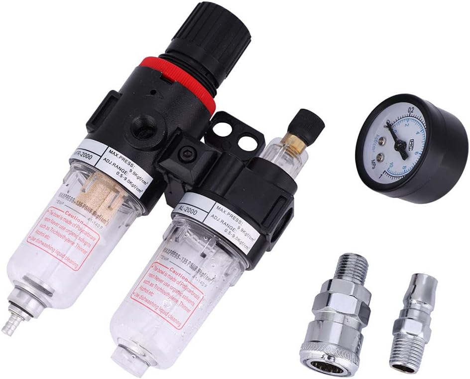 Oil Water Separator Filter AFC2000, G1/4 for Air Compressor, Adjustale Pressure 0.5 to 9Mpa with Quick Connector Afc2000 +, Filter and Regulator Combos