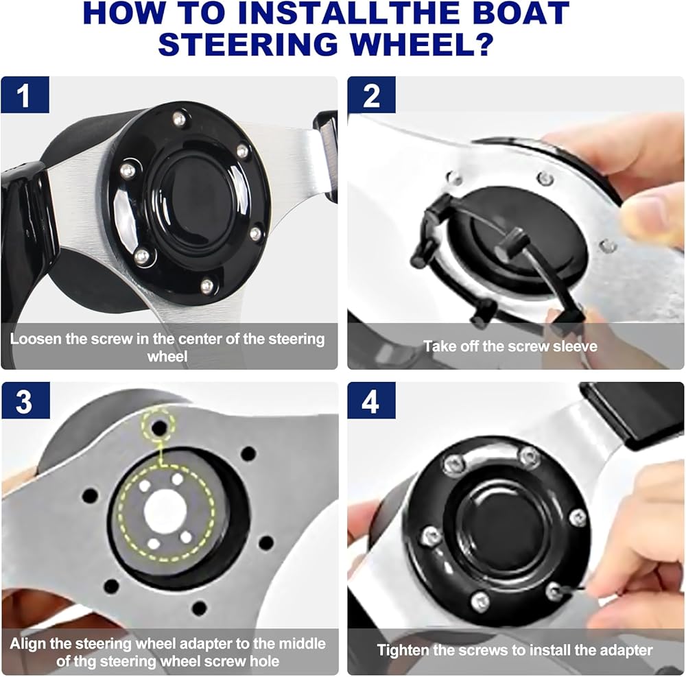 【Easy assembly】The speed boat steering wheel is easy to install, not requiring special tools. When installing,align the steering wheel adapter to the middle of the steering wheel screw hole.