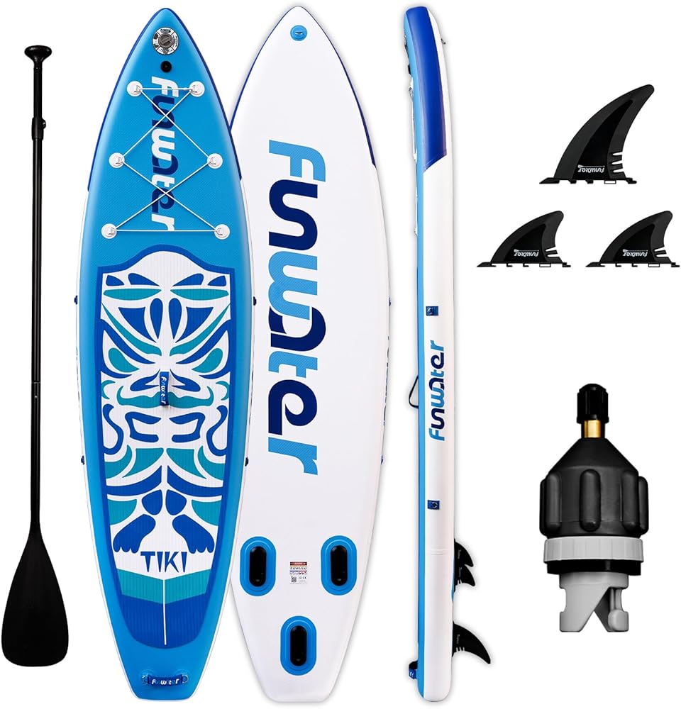 FunWater Inflatable 10'×30"×6" Paddle Board Inflatable SUP Inflatable Stand Up Paddle Board for All Skill Levels Included with Stand Up Paddle Board, Fins, Air Valve Adapters