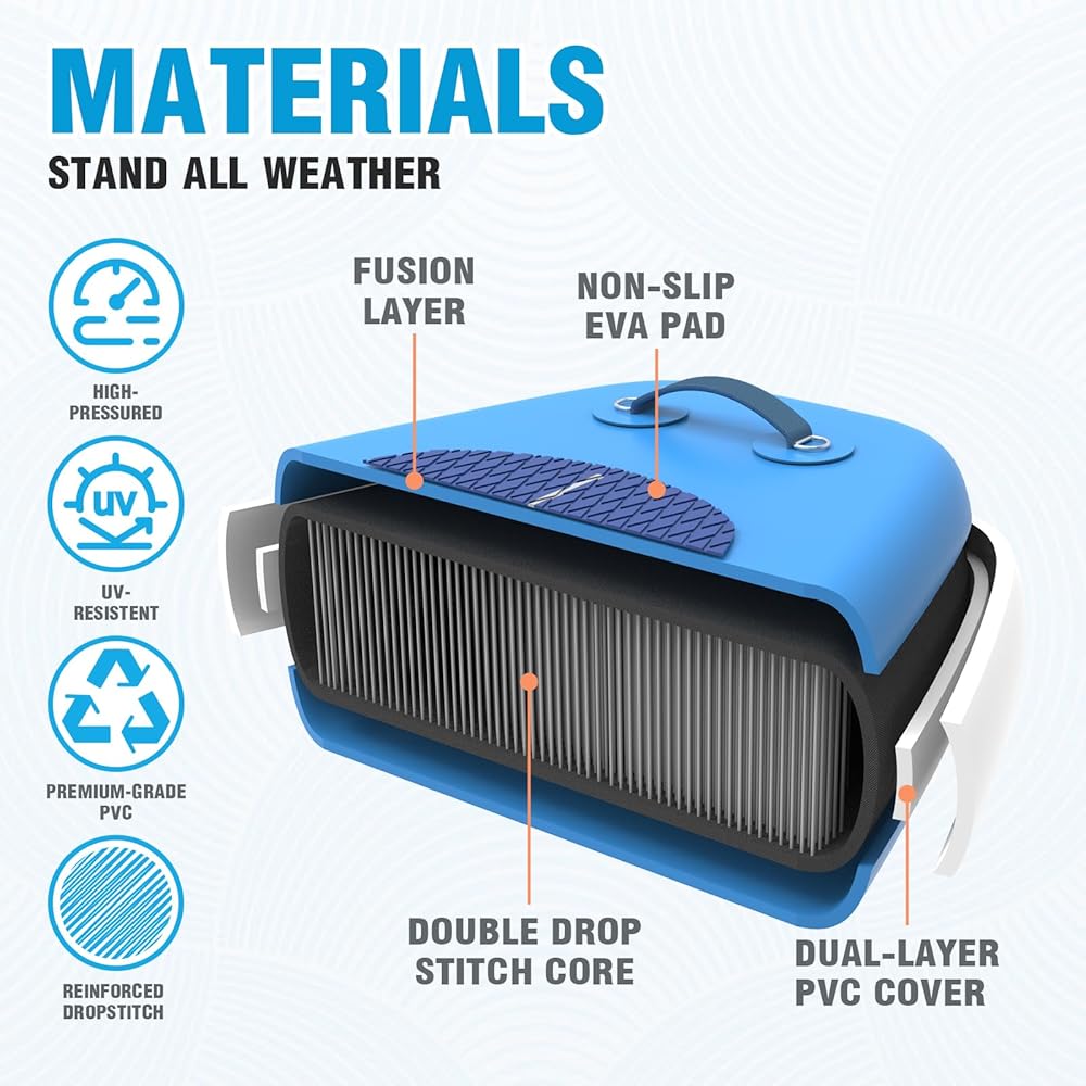 【Convenient and Portable Design】The unique SUP inflatable paddle board with two handles makes it very convenient to carry and use, and is a must for your travel trips. The multifunctional base allows you to fix your camera and record your wonderful life. You can also bundle the items you need to carry in the elastic cord area.