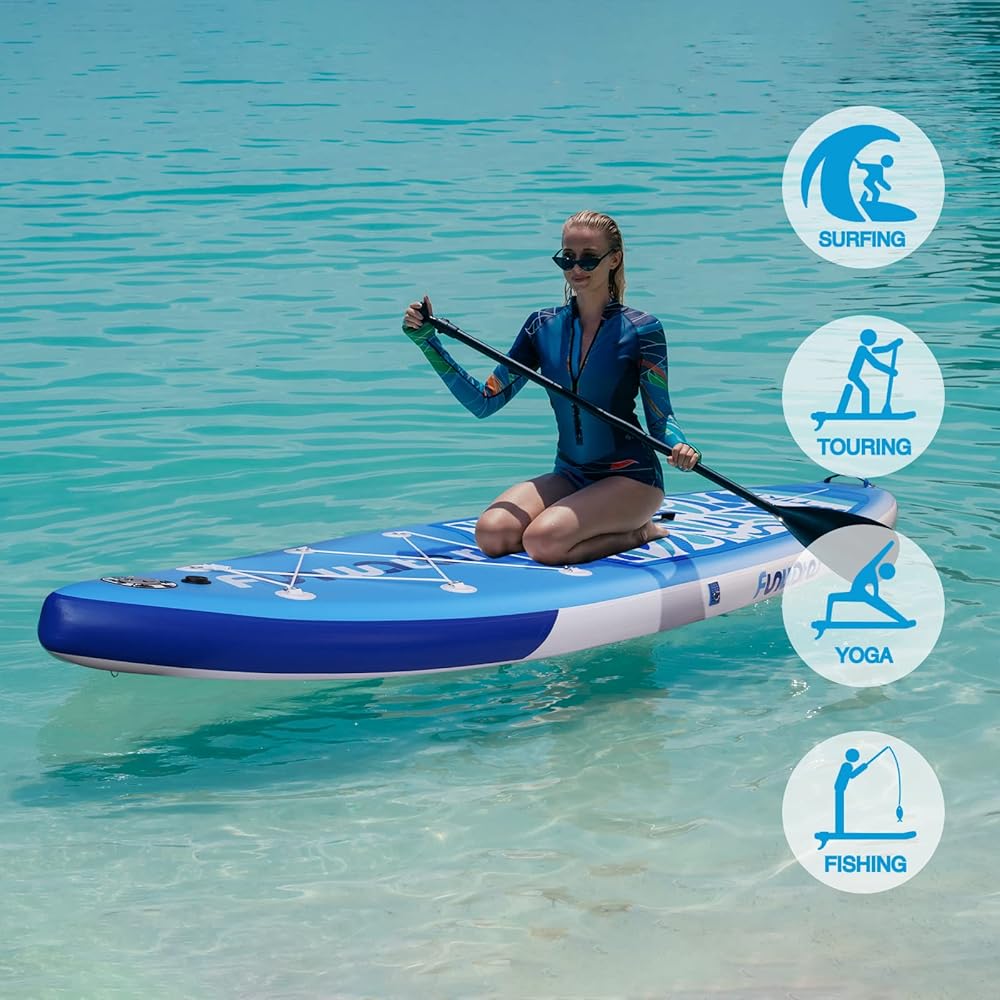 【Paddleboard Size】The FunWater paddleboard is designed to be 10' in length, 33" in width and 6" in thickness with great balance and stability, ideal for children, adults, beginners and experienced surfers, you can surf, paddle, yoga and fish on it with confidence and have a wonderful experience.