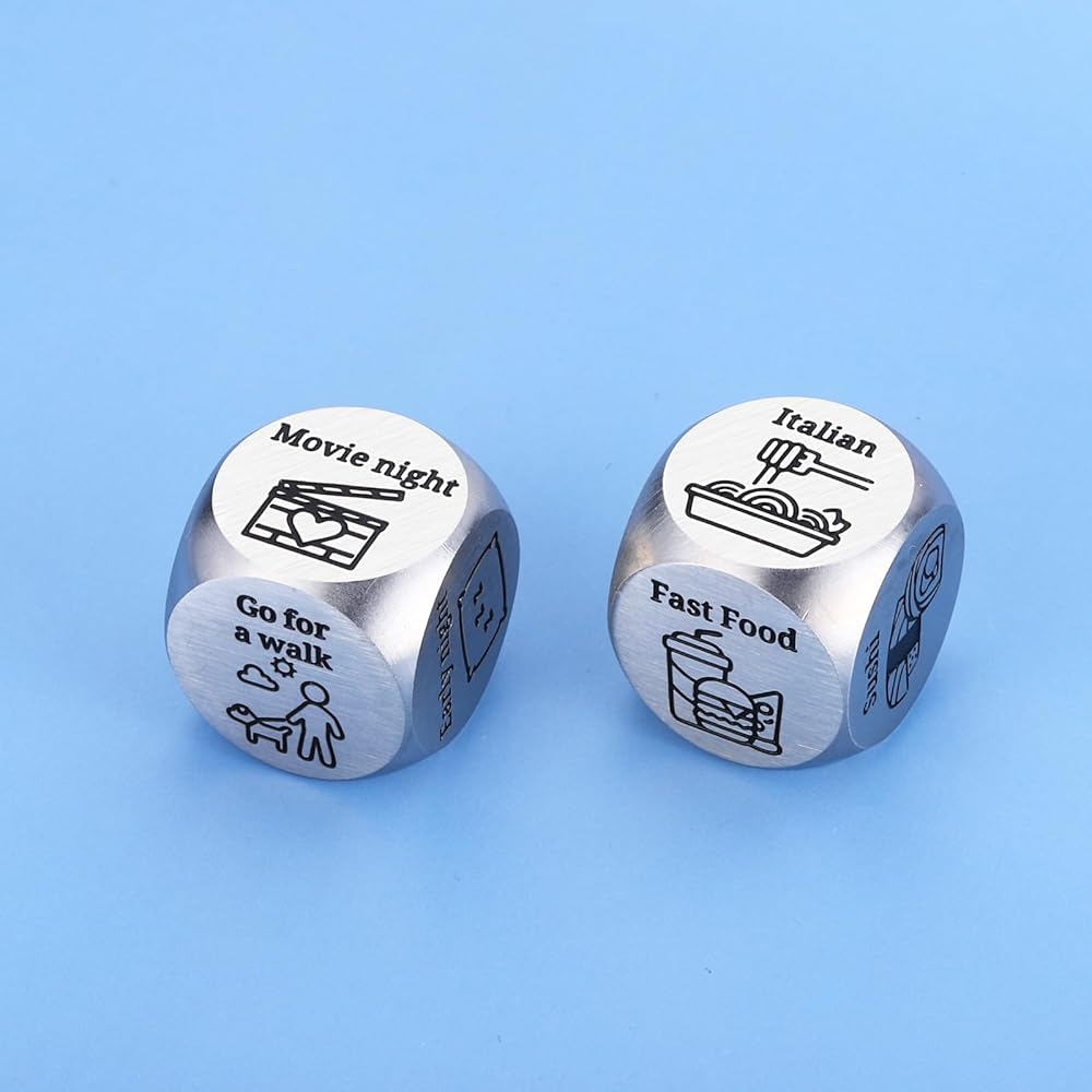 ❤A funny dice with food to choose is great as bridal shower gifts for bride, wedding gifts, bachelorette party gifts, 6th iron anniversary gifts, 11th steel anniversary gifts. Let's guess which food would be at the end.