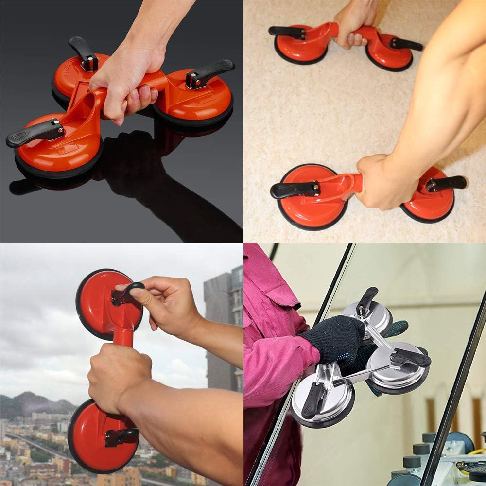 【MULTIPLE USES】: Our triple glass duction cups are perfect for lifting, moving, pulling, gripping, handling materials such as glass, mirror, metal sheet, tile, etc. Can be used as a dent puller for car, fridge, or washing machine body and If your handle is broken, it can also be used as a door handle.
