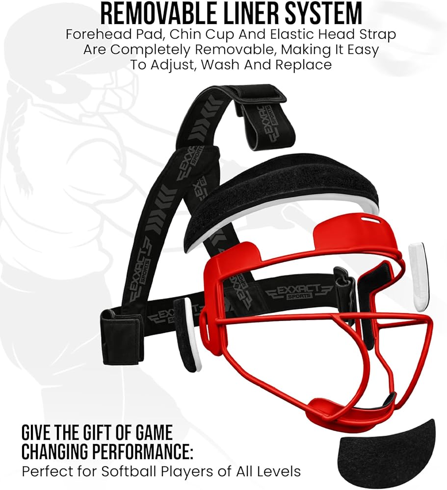 Removable Liner System: Skin-friendly EVA pads and elastic head strap of softball face guard are completely removable, making it easy to adjust, wash, and replace before and after the game. Plus, it's machine washable for hassle-free maintenance.