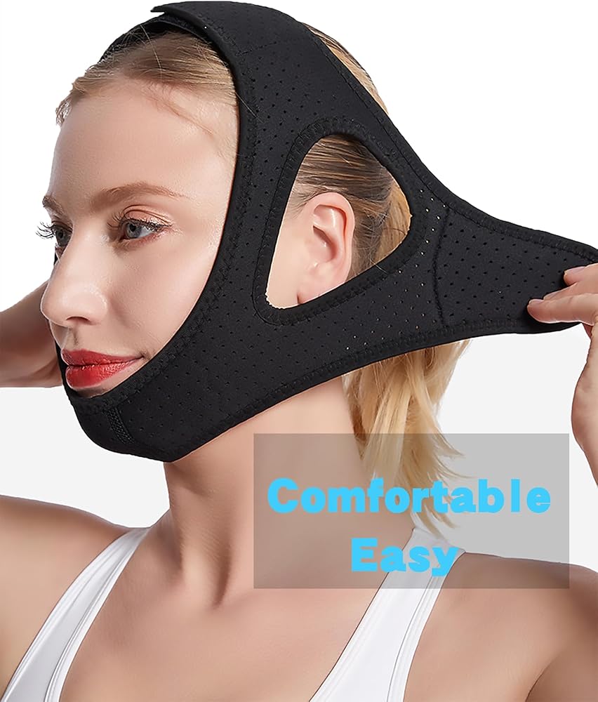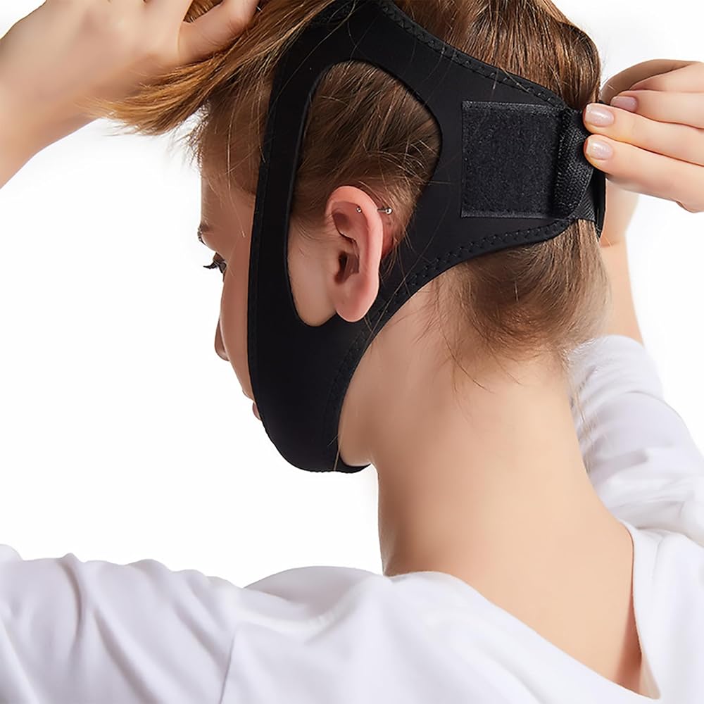 【Easy To Use】Aim at the chin, pull it upward tightly and fix it on the top of the head, keep your chin lifted and mouth closed, then adjust the strap behind the ear