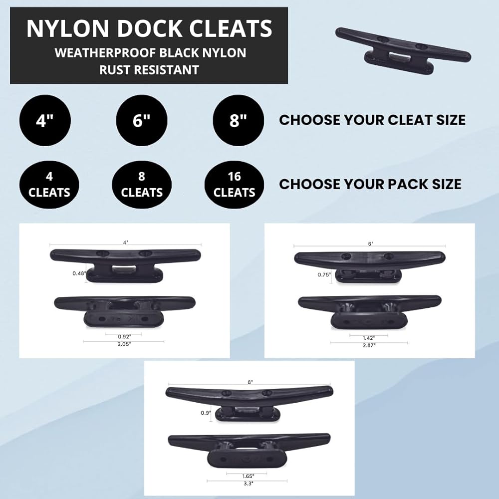 • MADE OF HIGH IMPACT NYLON - Durable nylon dock cleats that hold up against weather conditions. Rust-free dock cleats, weatherproof, and corrosion-resistant.