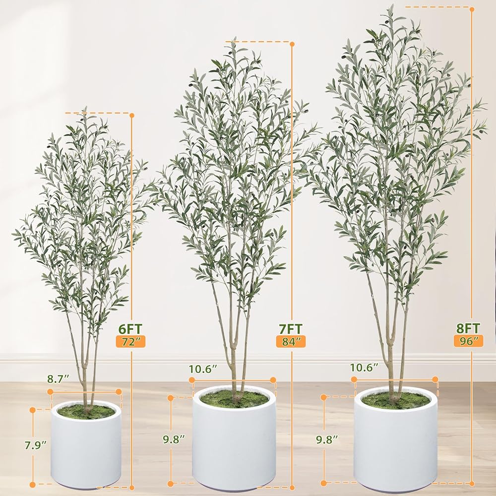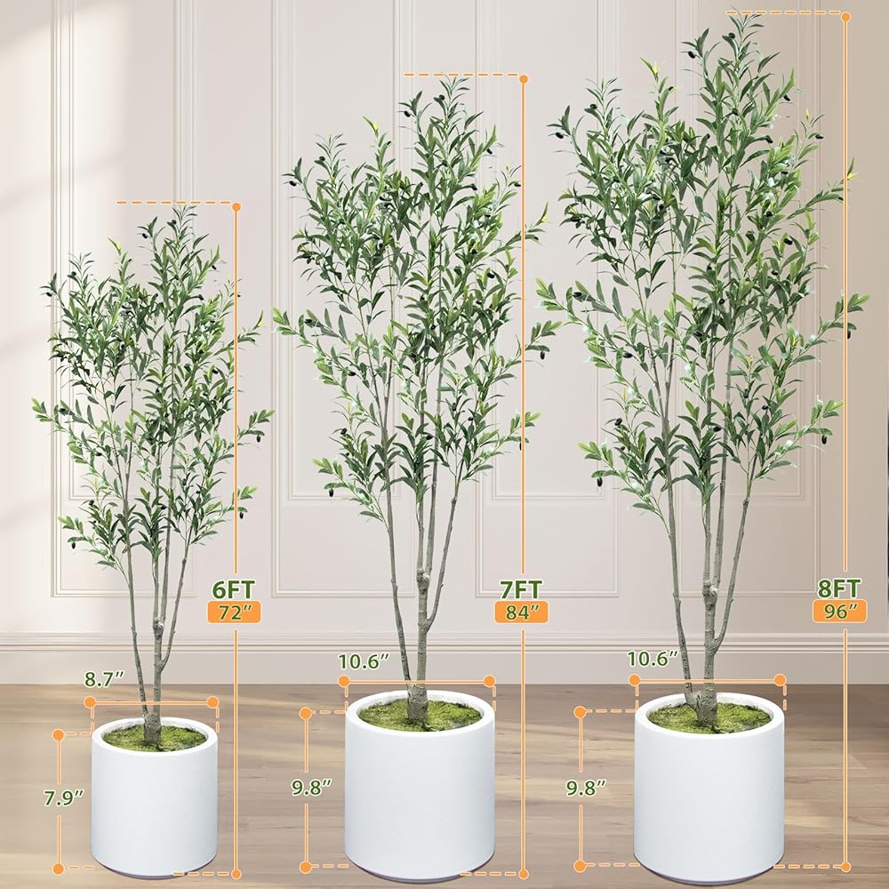 【Easy to Assemble】 Our artificial olive tree 6ft (72 inch) with an 8.7 inch matte white planter are easy to install, and you can shape the branches according to your preferences. After you get the product, you can assemble it according to the instructions in one minute. The branches are adjustable, it is very easy to bend the branches to full. The planter is sturdy.