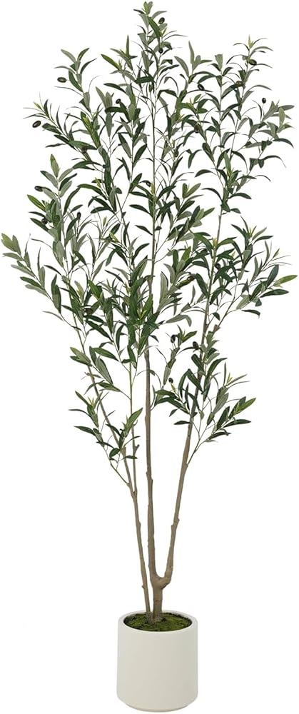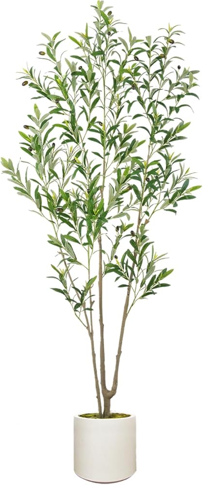 APRILSOUL Tall Faux Olive Tree, 6FT Olive Trees Artificial Indoor with Large White Planter and Natural Wood Trunk and Realistic Leaves, Fake Olive Tree for Home House Office Décor