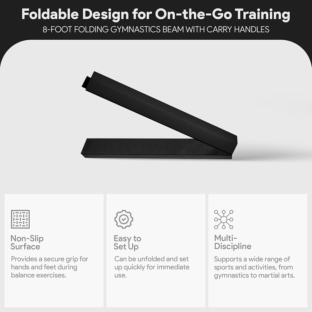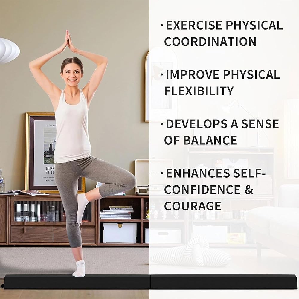 Upgrade your training with the BalanceFrom Folding Balance Gymnastics Floor Beam, designed to enhance the skills of young gymnasts, martial artists, cheerleaders, and special needs students. Crafted with high-density firm foam material, this beam delivers stability and feels similar to competition beams, ensuring a professional training experience. The high-grade PU cover adds durability, making it perfect for rigorous practice sessions at the gym or home. The balance beam's convenient design allows for effortless setup and portability. It extends to 8 or 9 feet when unfolded, standing 4 inches high with a 4-inch top that gradually tapers to a 6-inch broad base. This thoughtful design provides ample space for various exercises while maintaining safety and stability when storing or transporting; the beam conveniently folds down to 4 or 4.5 feet, fitting easily into compact spaces or carrying bags. Whether you're a young gymnast perfecting your routines, a cheerleader enhancing your balance skills, or a martial artist refining your techniques, this beam offers the versatility and quality you need. It's also an excellent tool for special needs students, aiding in developing coordination and balance in a supportive environment. With its blend of quality construction, portability, and practical design, the BalanceFrom Folding Balance Gymnastics Floor Beam is an indispensable addition to any training regimen. Support your performance and watch your skills soar with this essential training aid.