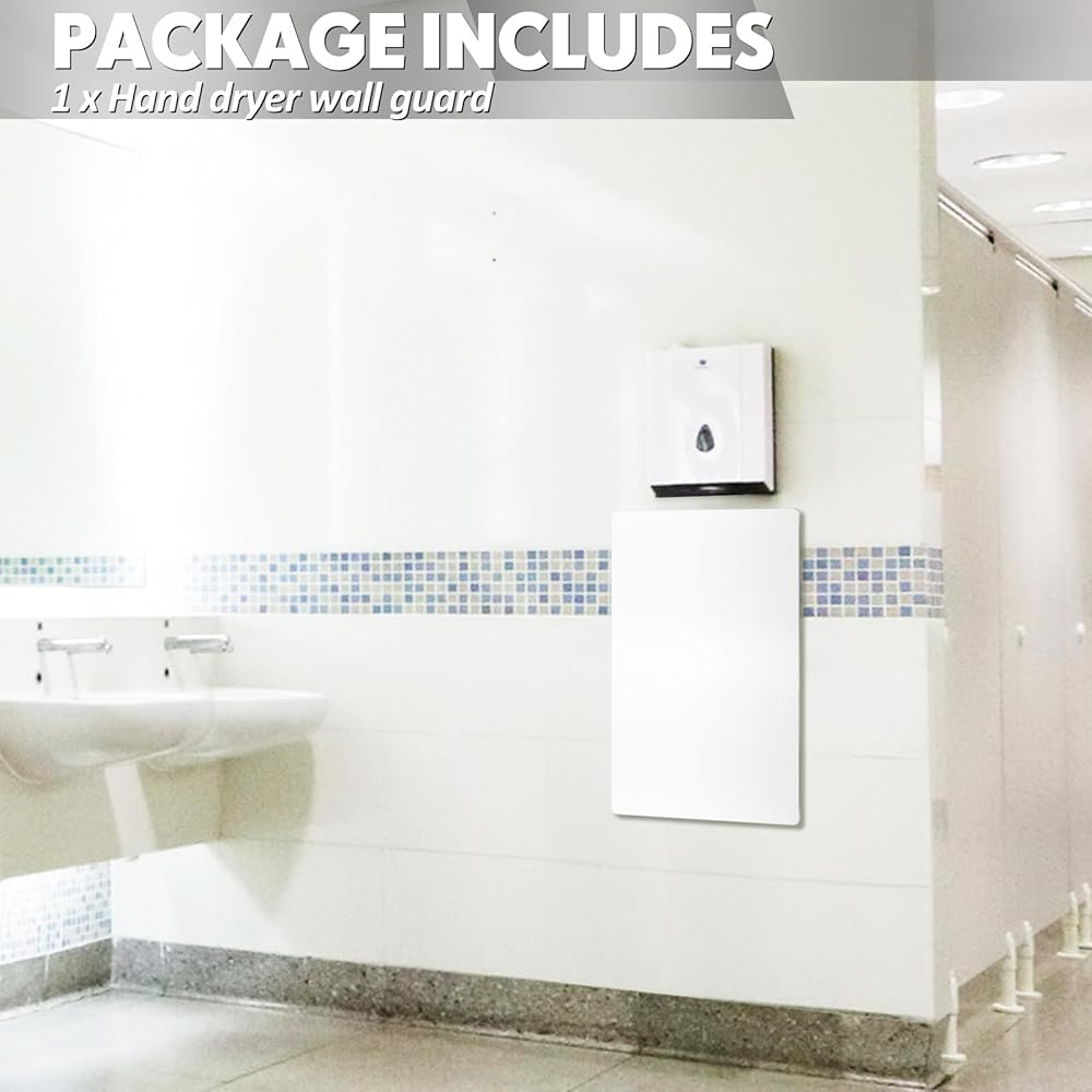 Ideal Sizing and Sophisticated Packaging: this hand dryer wall splash guard boasts of an ideal size measuring about 32 x 16 inches/ 80.8 x 40.2 cm; Carefully packaged, the package includes 1 piece of wall hand dryer guard designed to fit underneath your hand dyer, enhancing your bathroom's functionality and aesthetic appeal