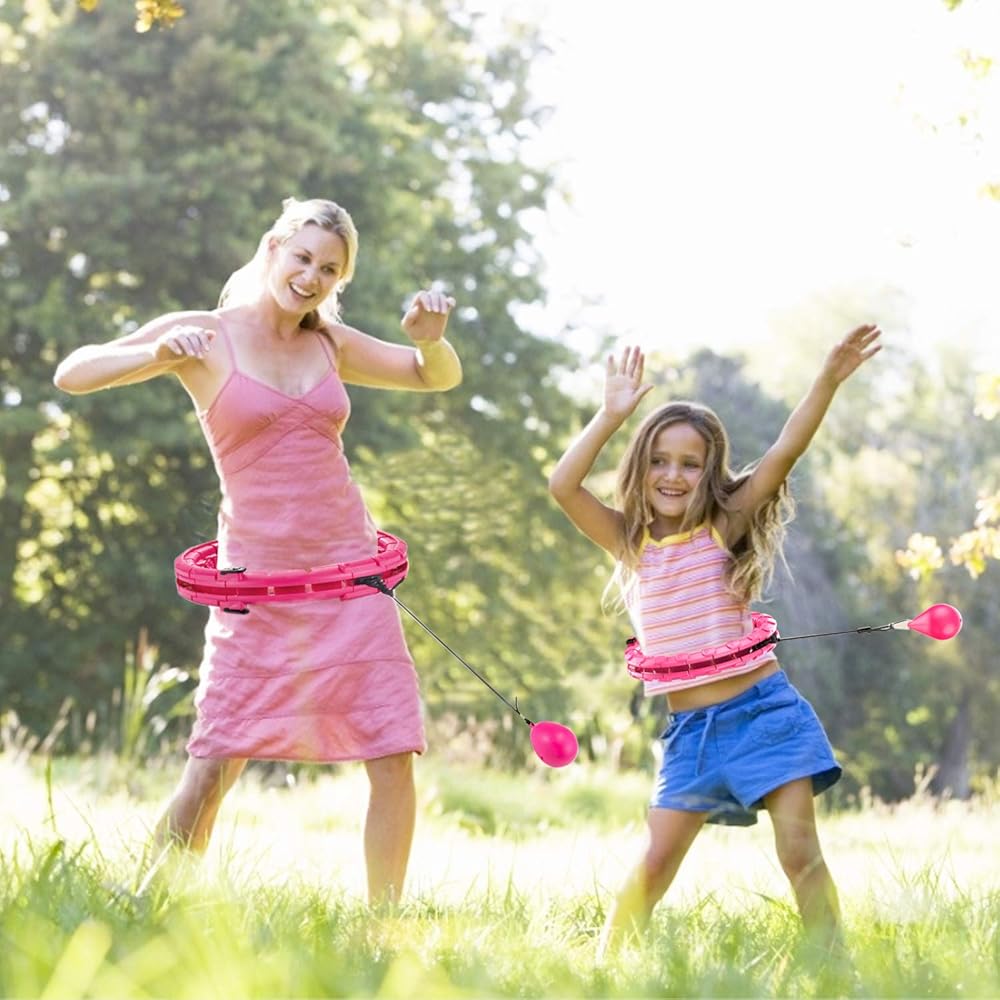 Smart Adjustable Hoop, 24 Knots Fitness with 360° Massage Head, 2 in 1 Detachable Abdominal Fitness and Massage for Beginners and Professionals MHG05, Pink