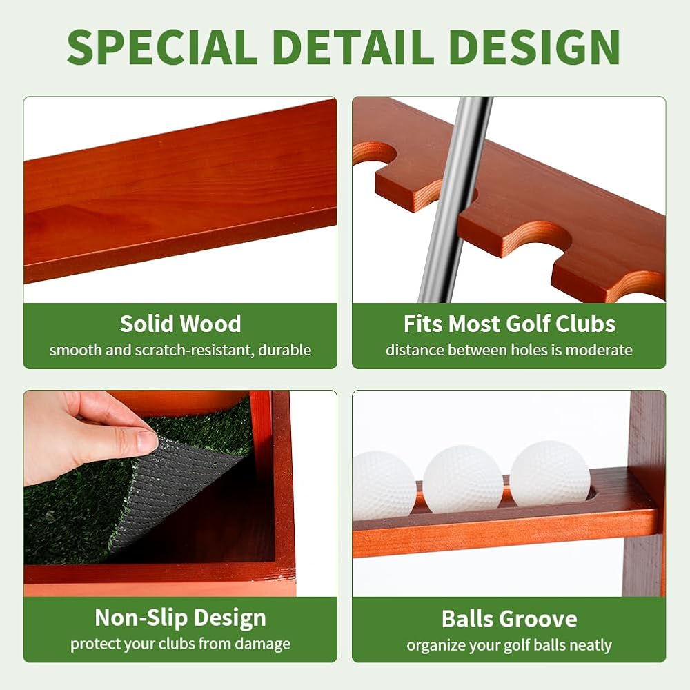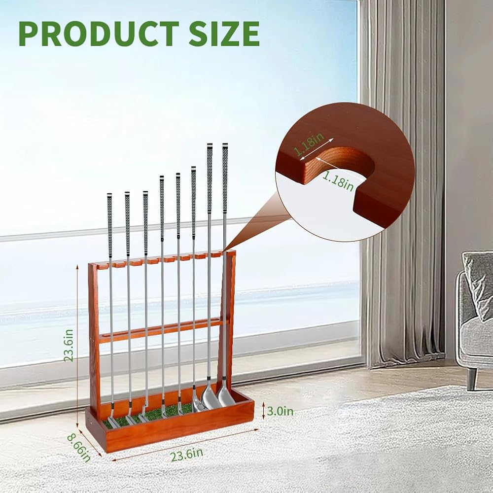 Stylish Wooden Putter Stand: The premium wooden putter rack with a professionally stained finish for storage and display. Unlike traditional metal racks, our wooden golf putter stand is more durable and long time use.