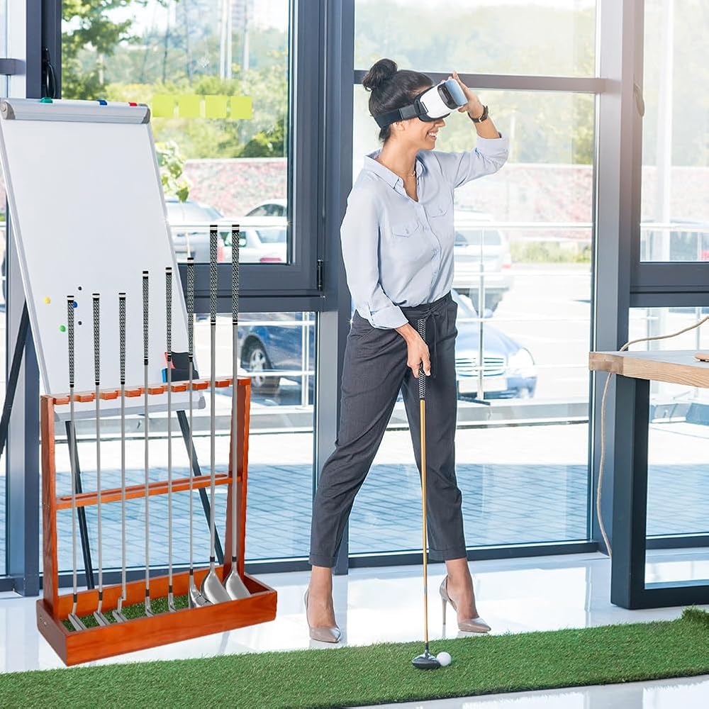 Soft Grass Mat: We added the green artificial grass mat to support your golf putters, it is a good way to protect your clubs from scratches and damages.