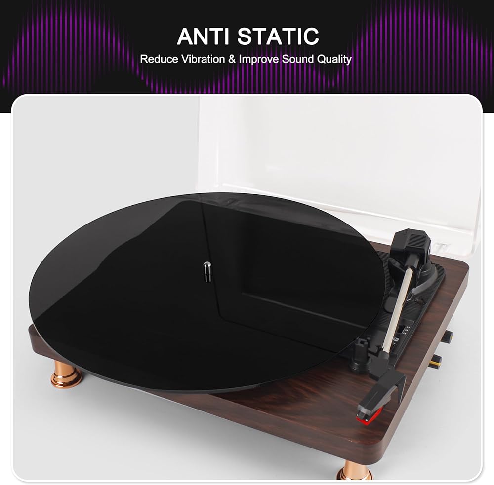 💽Specifications - Diameter: 300mm/11.8in, Thickness: 3mm/0.12in; Hole diameter: 8mm. The record player mat fits all standard 12" turntables, also works great for your 33 1/3rpm and 45rpm records.