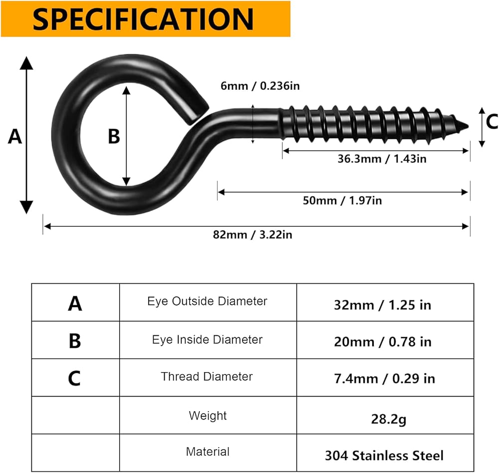 [مادة ممتازة]: مصنوعة من الفولاذ المقاوم للصدأ 304، تتميز براغي العين هذه بخصائص فائقة مقاومة للصدأ ومقاومة للماء ومضادة للتآكل. مثالية للتطبيقات الداخلية والخارجية