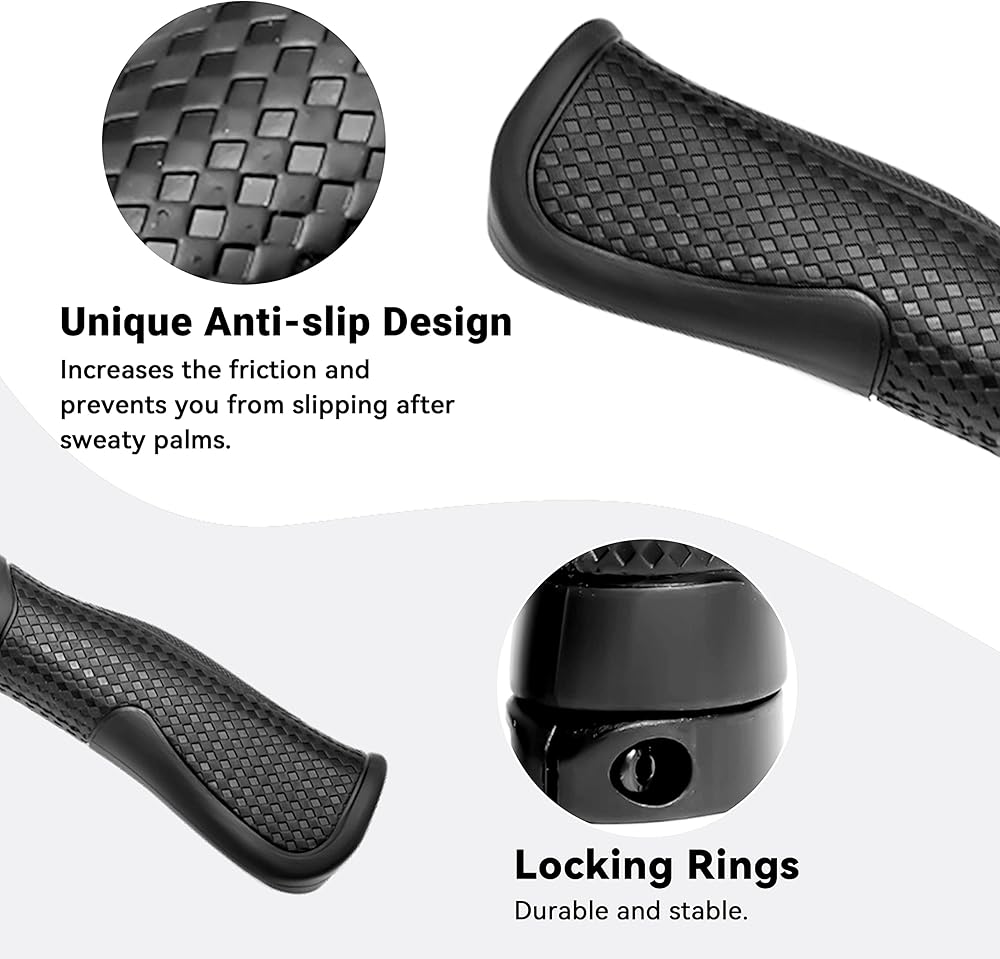 【Ergonomic Shape】Handlebar grips with ergonomic palm rest design can fit your palm well, preventing the wrist from deviating. Ergonomic groove grip design can support from the index finger to the thumb, offering the best grip for the natural state of riding.