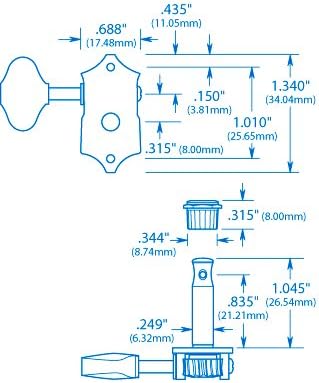 Sets of 6 (3-left/3-right). Each set includes mounting screws and knurled press-fit peghead bushings. 11/32" (8.73mm) diameter pegholes required.
