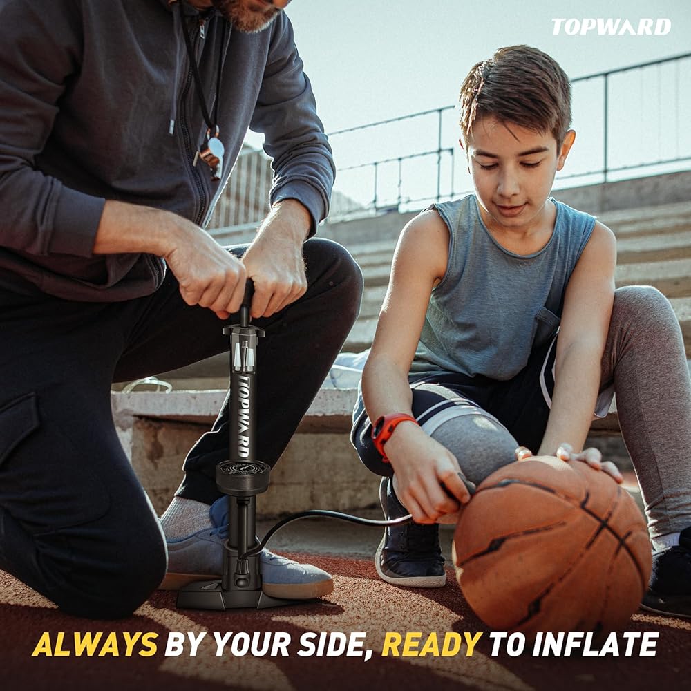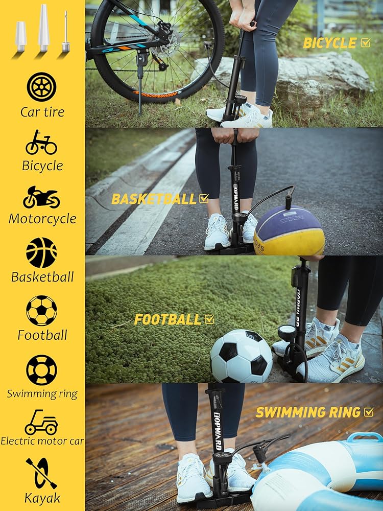 Versatile Compatibility: Compatible with all types of bicycles, including mountain bikes, road bikes, hybrids, and more, our bicycle pump with pressure gauge is a must-have for cyclists of all levels. Besides, this cycling floor pump comes with ball needles for inflate your basketball, volleyball even swimming ring and any inflatable balls toys.