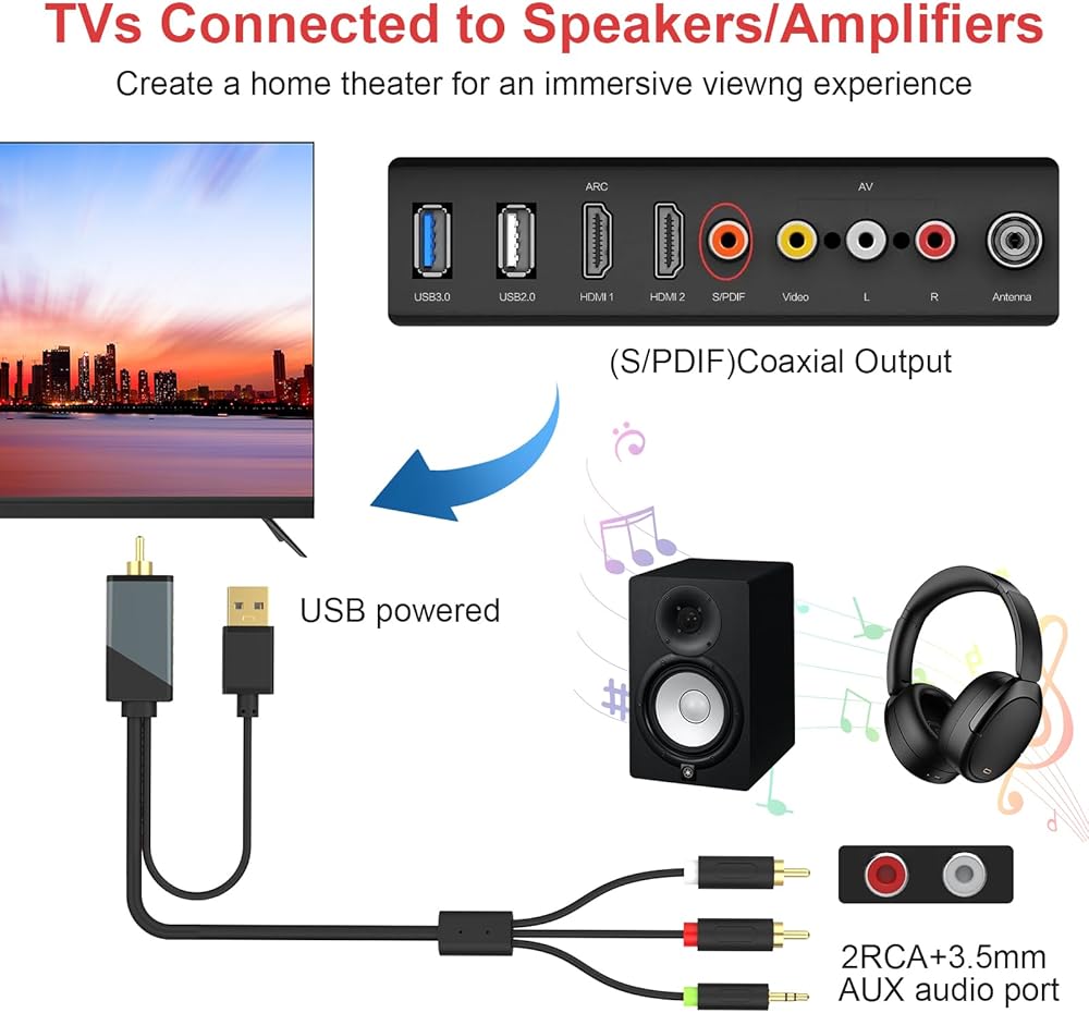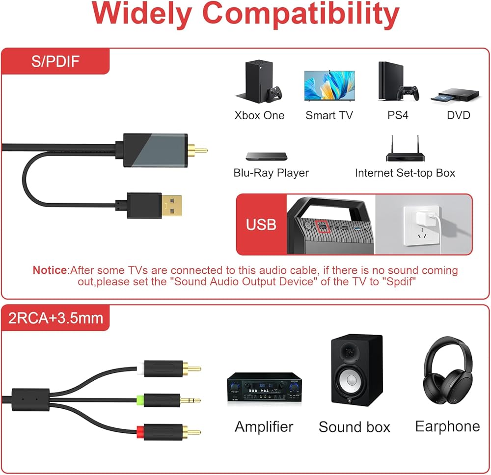 Suitable for connecting headphones, amplifiers, speakers and other audio devices to TVs, network set-top boxes, PS4, Blu-ray DVDs, smart TVs, etc.