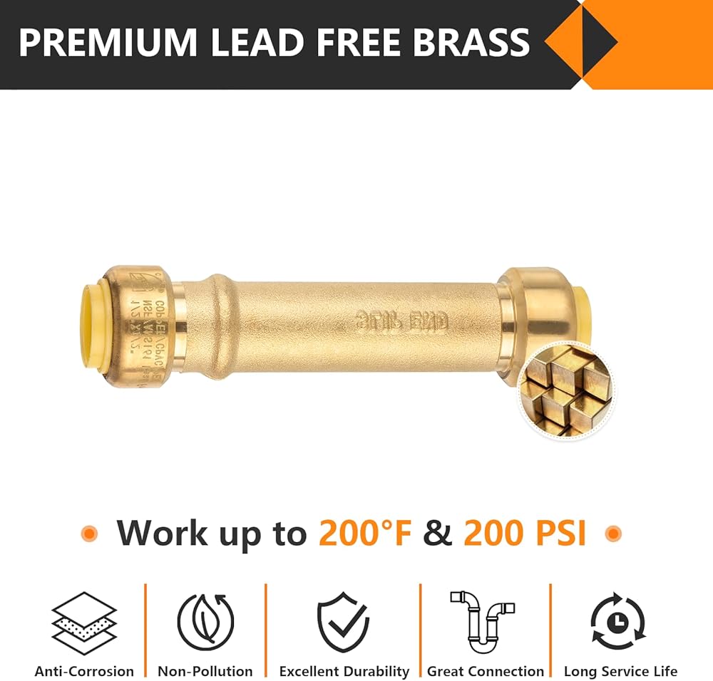 🔶【SUPERIOR QUALITY】Made of lead-free, anti-corrosion brass. Our pushfit fittings certified by CUPC,ANSI/NSF-61,NSF-372,ASSE1061,which is safe for drinking water.