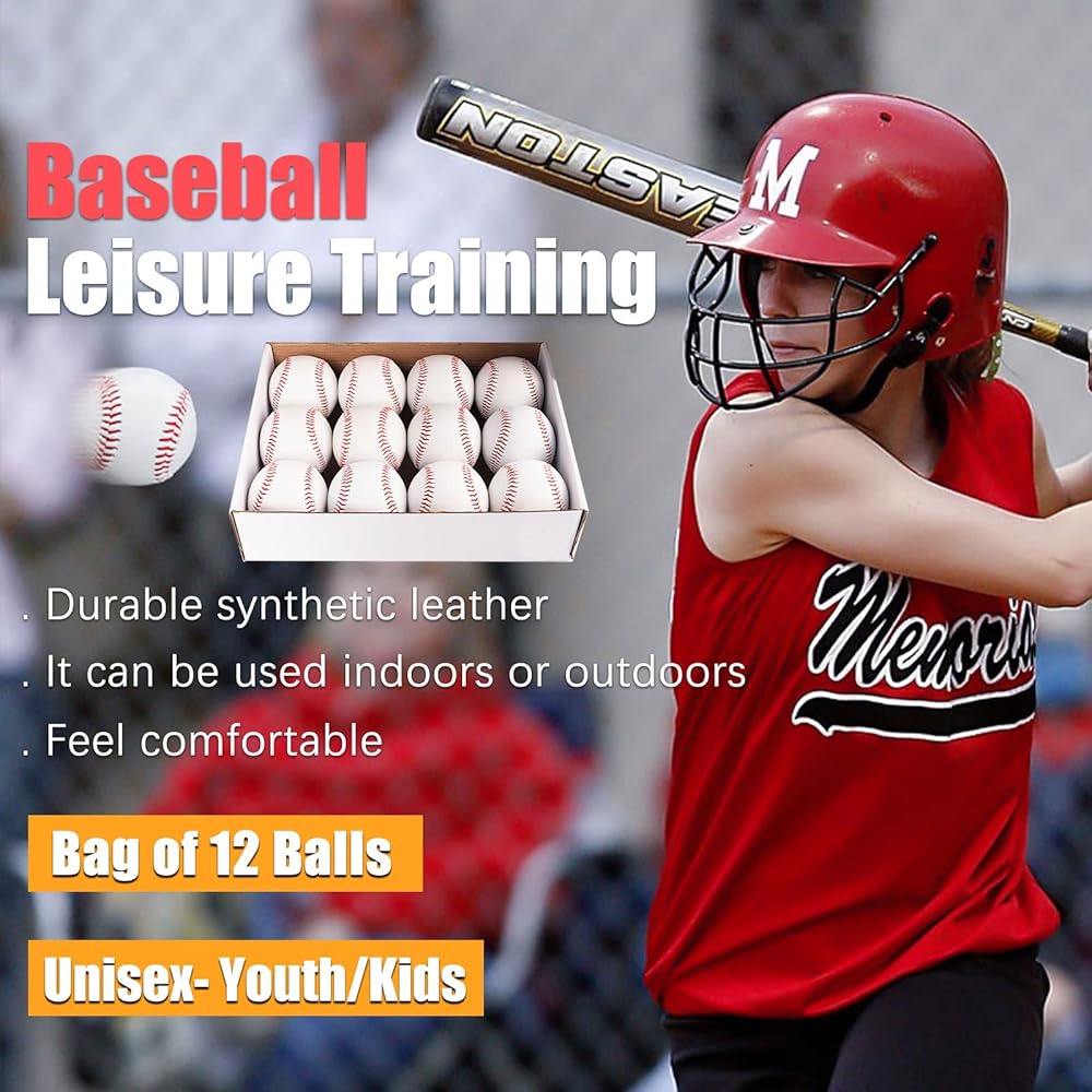 ⚾【OFFICIAL WEIGHT & SIZE】: Standard baseball circumference of 9 inches, weight: 5 oz, and stitches:108, box of 12 balls. You will have a good experience with the sport soft baseball. Standard size and weight help players train effectively and build confidence, making them the best choice of leagues, coaches, parents, and players in America.