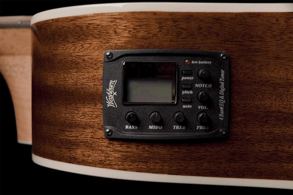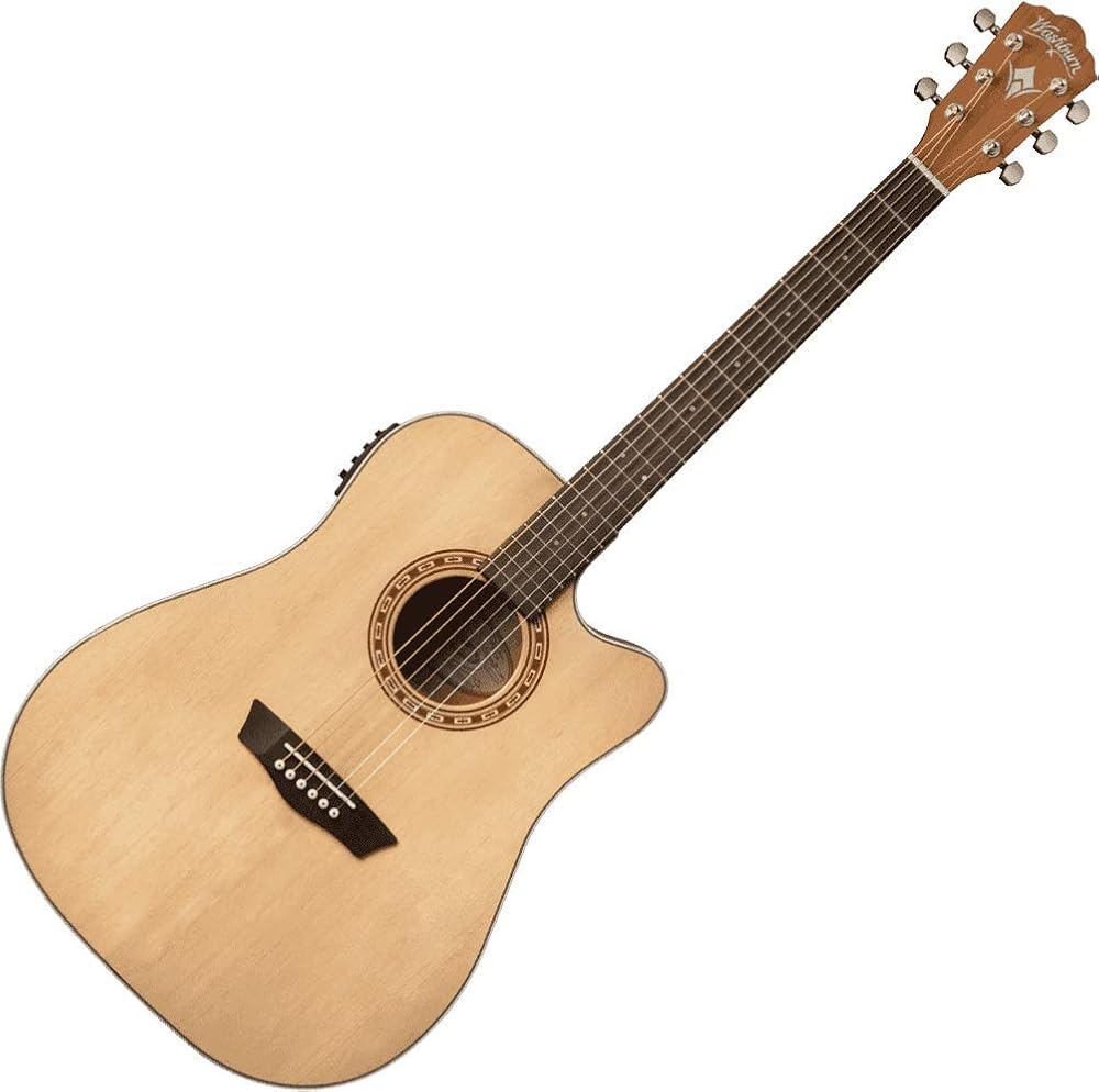 Washburn Harvest 7 Series cutaway-electric Dreadnought body with solid spruce top and Barcus-Berry electronics. A feature of the solid spruce top is that its tone will improve with age. The quality, tone and features of these acoustics is unmatched in this price range. A stage/performance friendly cut away version is offered for players that play live. Audition a Harvest Series guitar today and prepare to be amazed.