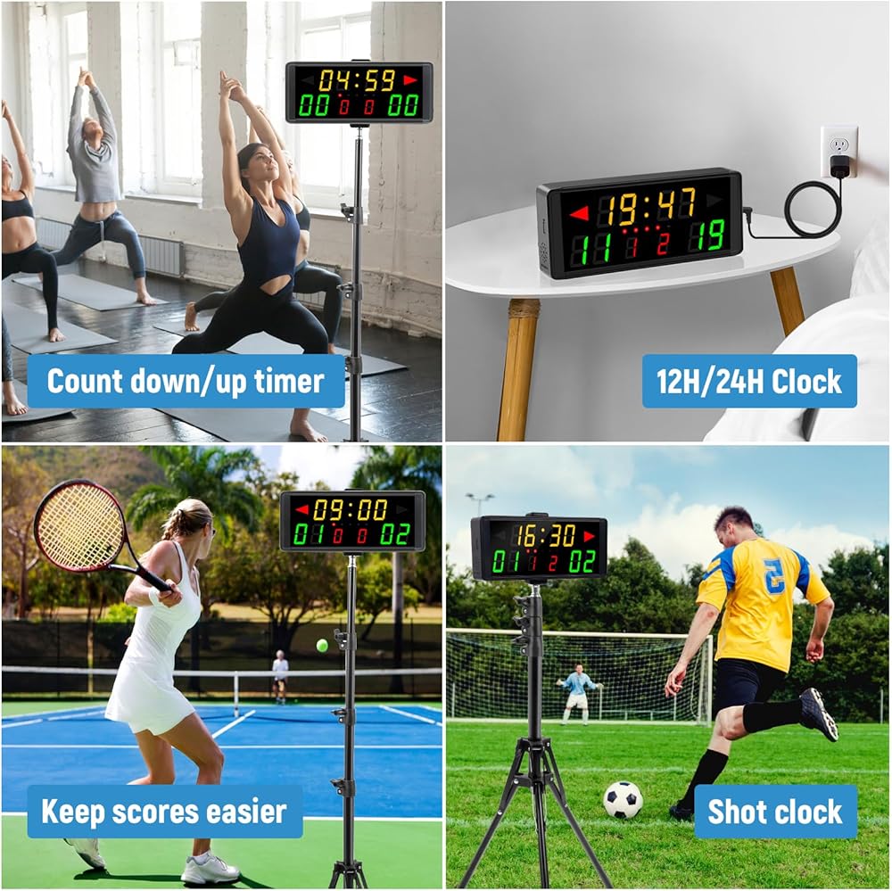 【Count down/up timer and 12/24h clock】--Portable scoreboard can be like a score flipper also can be used as a wall clock with a count up/down timer. Digital scoreboard can be as a hour-minute/minute-second count down/up For fitness, exercise, games, homework, facecare and more! As a wall clock, the display can be switched between 12 and 24 hours.