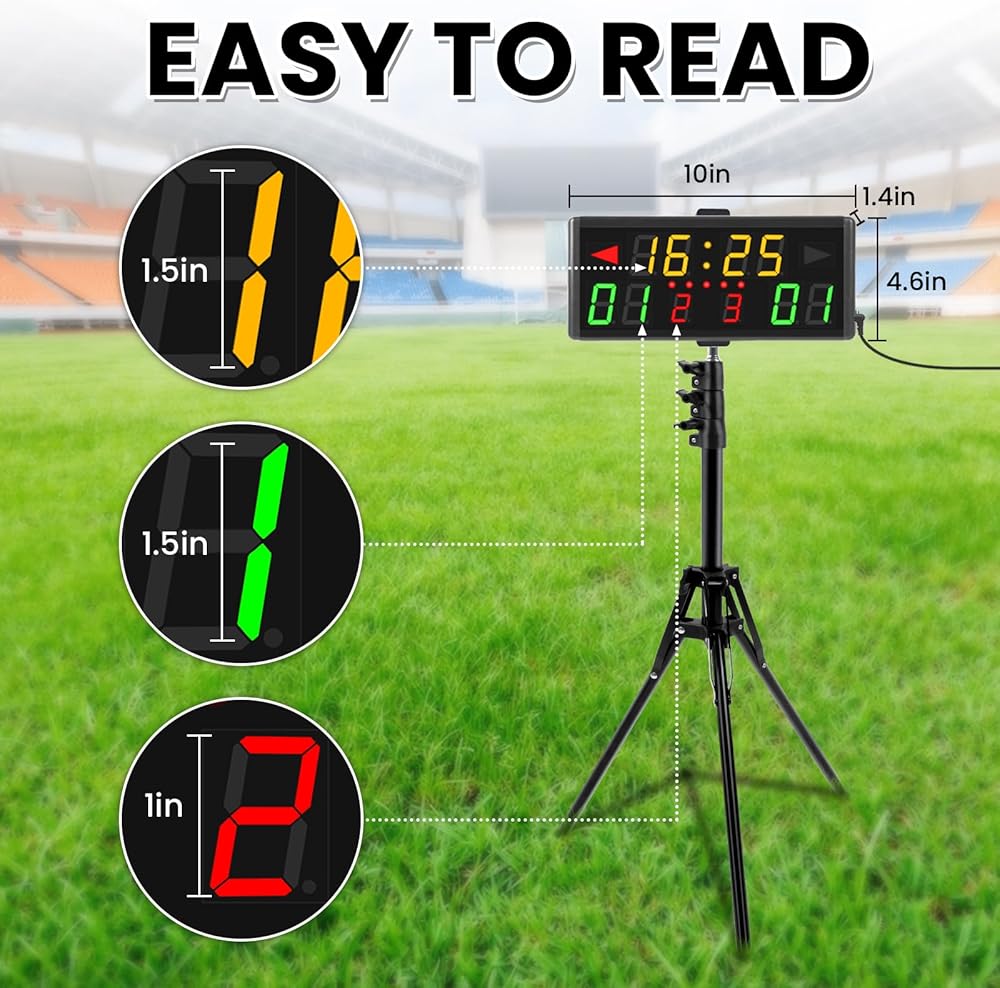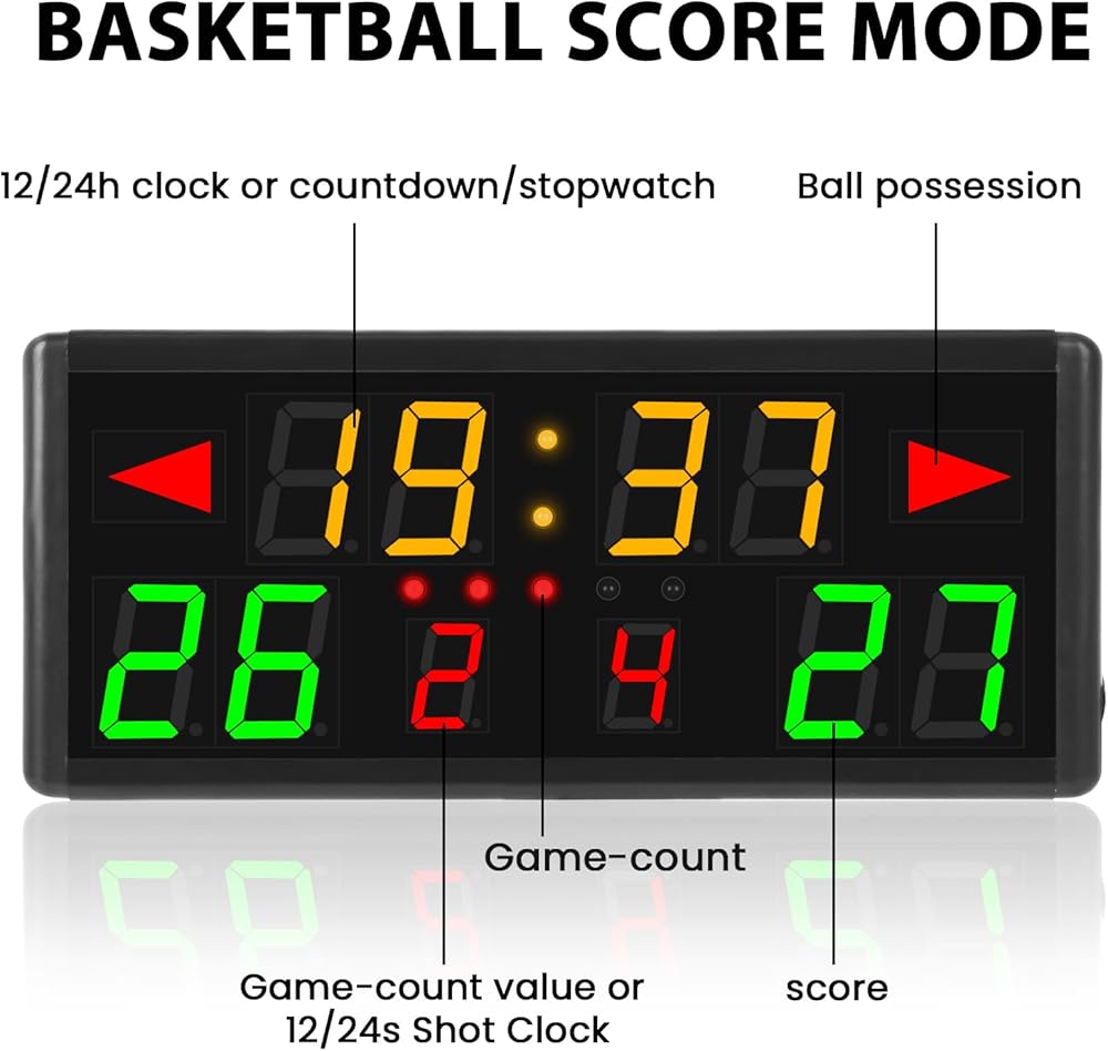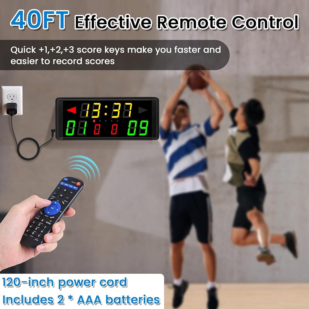 【1.8" Digital Display Clearly and Brightly】--Digital LED scoreboard is displayed by 1.8" number. Specially selected red and green colors are clearer and brighter. Green is home score and red is the guest score so that you can easily to distinguish between home and guest teams.