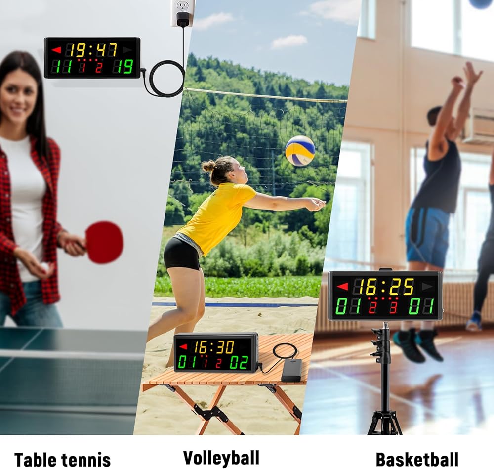 【Electronic Scoreboard for Games/Events】--Electric scoreboard with count down/up Timer as a score keeper, this electronic digital scoreboard with remote can be used for indoor/outdoor games, such as corn hole game, ping pong, basketball, table tennis, volleyball, badminton, baseball and other competitive games.