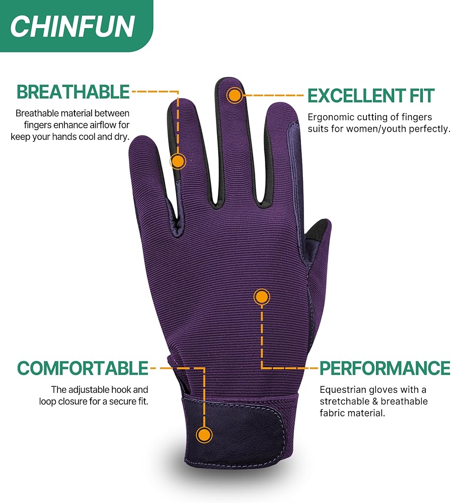 【Breathable】The Horseback Riding Gloves for ladies made of superfine fiber materials and double-layered reinforced forefinger design for breathability and maximum freedom of movement whilst riding.