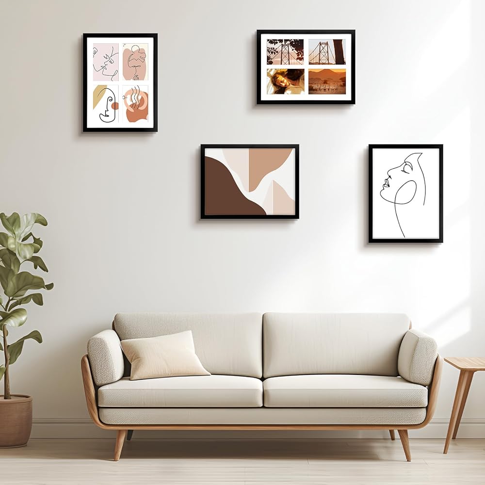 Modern Design: Black Color Wooden Frames, Includes a White Mat for Two Openings (Opening Size: 4.5x6.5) or 8.5x11Photographs (without Mat)